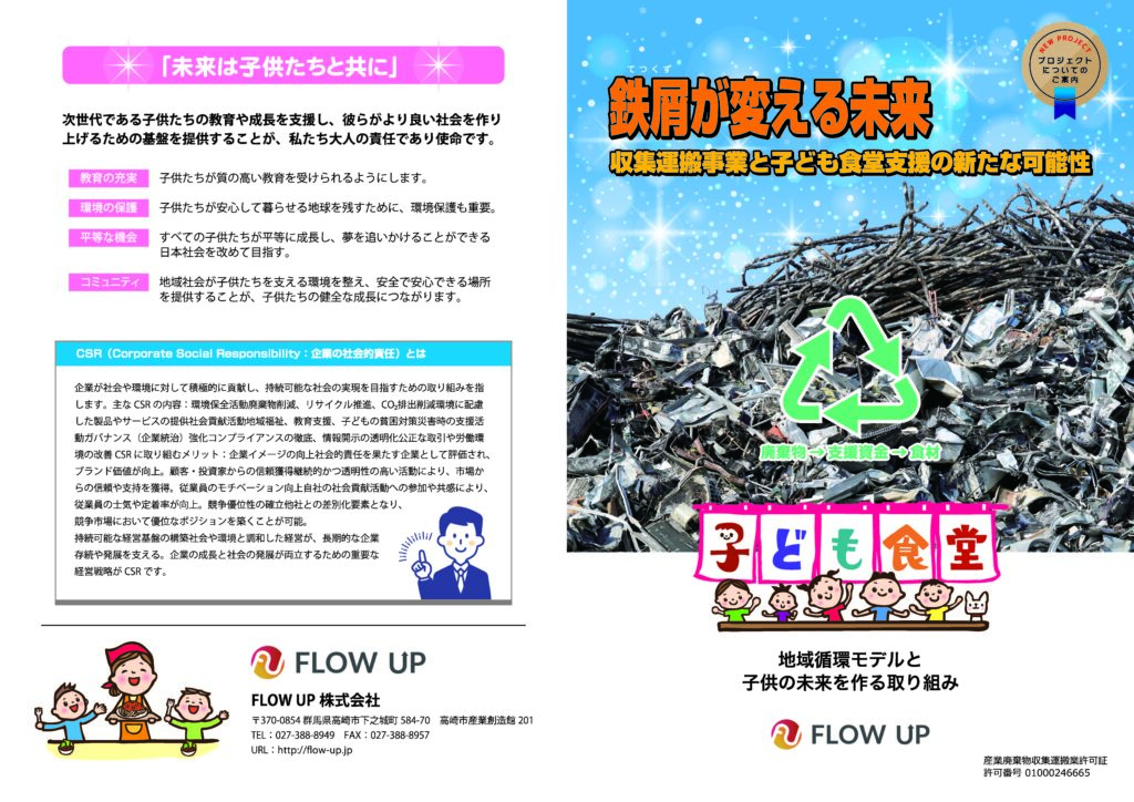 鉄くずで得た利益の一部で地元の食材を購入し、子ども食堂に寄贈する活動を行っています。